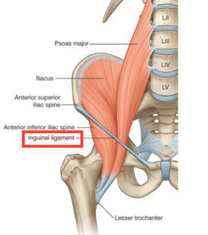 :arrow: En revanche, le ligament inguinal relie l'épine iliaque antéro-supérieure à l'épine pubienne : il se situe donc beaucoup plus bas !!