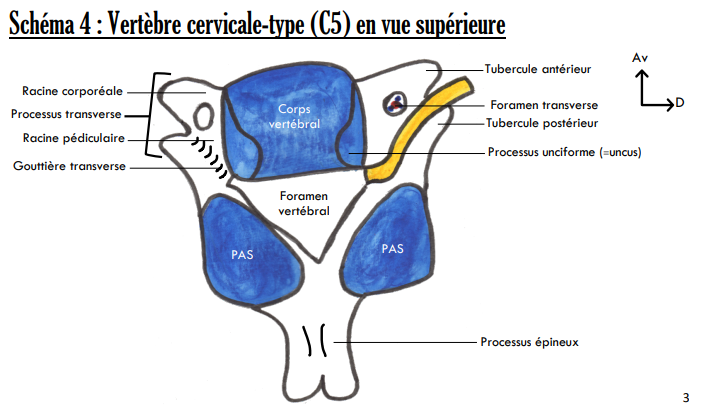 Alors en effet, on ne peut pas voir le rostrum sur une vue supérieur et puis même si c'était le cas, le numéro 5 pointe le processus articulaire vu que le pédicule est représenté par le 8. Après j'ai une légère hésitation quant au fait que ce soit le 5 ou le 9 le processus articulaire mais ils montrent tout de même sensiblement la même chose @@