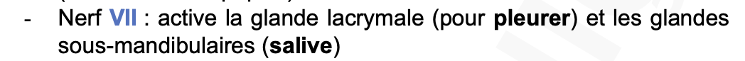 Le nerf VII stimule les glandes lacrymales nasales et sous-mandibulaires