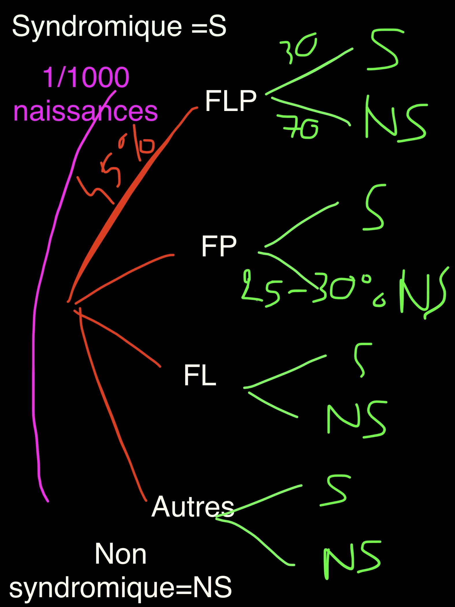 Dans le cours il est écrit que les FLP isolées, non syndromiques représentent 70% des FLP,