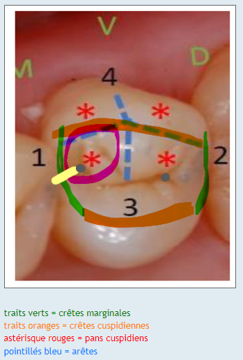 J'ai trouvé ce schéma sur les crêtes marginales qui sont " à l'intersection du plan cuspidien et d'un crête marginale"