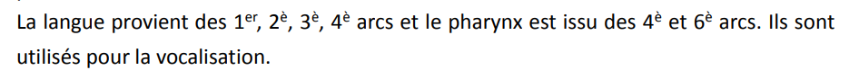 Hors le pharynx est issu des arcs 4 et 6 et ils sont utilisés pour la vocalisation.