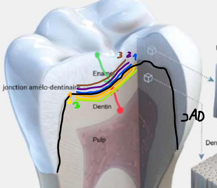 Ici je t'ai dessiné du coup les couches d'émail et de dentine qui se forment au fur et à mesure.