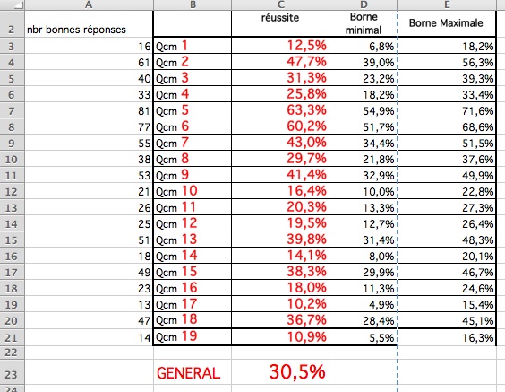 Vous voyez que certains QCMS ont été très bien réussis comme les : 2, 5, 6, 7, 9, 13.