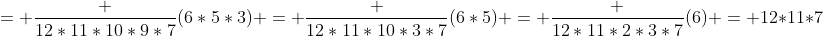 :arrow: pour le dénominateur je n'arrive pas à voir comment on passe de 12!/6!6! à 12*11*7