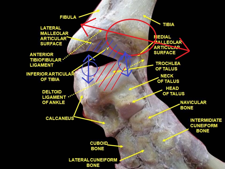 Je vous ai mis un schéma d'une vue antérieure de l'articulation tibio-talienne (que j'ai tenté de faire, je ne vous garantie pas la qualité mais ça sera déjà ça je pense :))