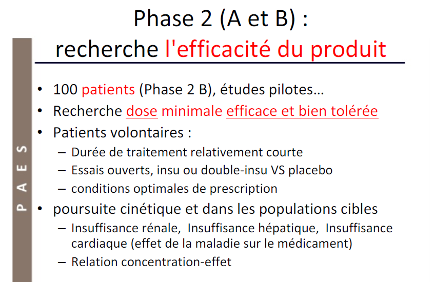 Item : en phase 2 on poursuit les études PK seulement sur des malades sans autres pathologies