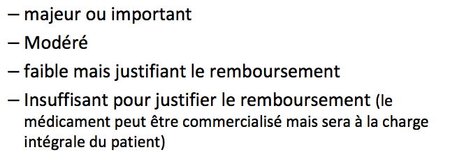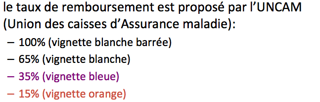 dans le même cours de Drici on dit que les médocs qui ont un SMR insuffisant ne sont pas remboursés et on ne donne aucune couleur de vignette pour ceux-là... on parle que de 15% au minimum...