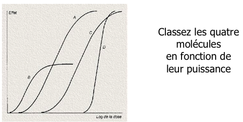 Il nous demande de classer les 4 molécules en fonction de leur puissance et la réponse est :