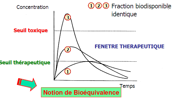 Sur le schéma ac les 3 courbes pour définir la fenetre thérapeutique, il est dit que leur biodisponibilité est variable!!