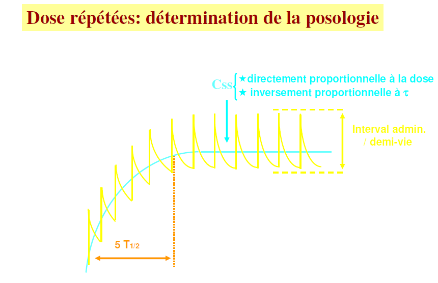On rappel que la concentration d'équilibre (css) = concentration quand la phase de plateau est atteinte : au bout de 5 demie-vies