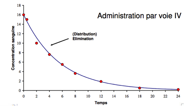 Il est faux de dire que l'administration d'un medicament en intraveineuse donne une courbe a modele mono-compartimentale. Mono-compartimentale voudrait dire que le medicament ne va que dans le sang avant d'etre elimine. Or, le medicament va distribuer dans d'autres compartiments (meme en intraveineuse) et la courbe devient pluri-compartimentale.