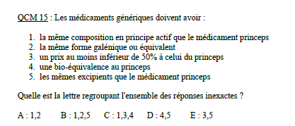 Moi j'aurai dit 55% parce que ça date de 2008 alors que 30% c'était en 94-96, mais dans un qcm du concours de 2011 l'item "les génériques doivent avoir un prix au moins inférieur de 50% à celui du princeps" est compté faux... (et je ne pense pas que ce soit faux parce que c'est 55 et pas 50)