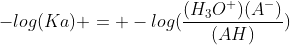 = -log(\frac{(H_3O^+)(A^-)}{(AH)}))