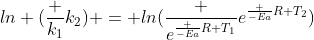 = ln(\frac {e^{\frac {-Ea}{R T_1}}}{e^{\frac {-Ea}{R T_2}}}))