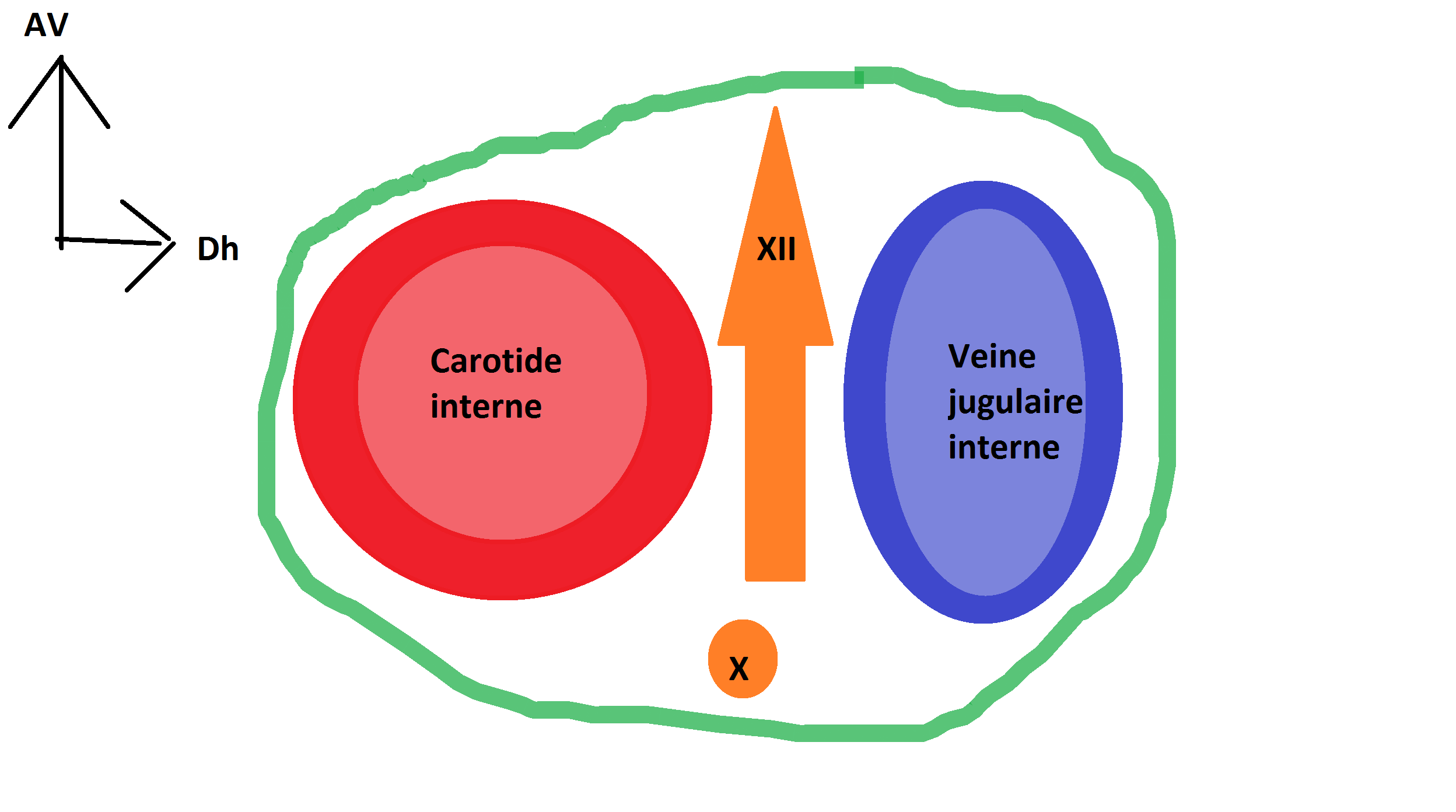 On parle bien du XII ? Parce que je pensais que c'était le X qui passait dans cette partie et le X croise l'anse cervicale à un moment, même si ils ne se rejoignent pas vraiment ...