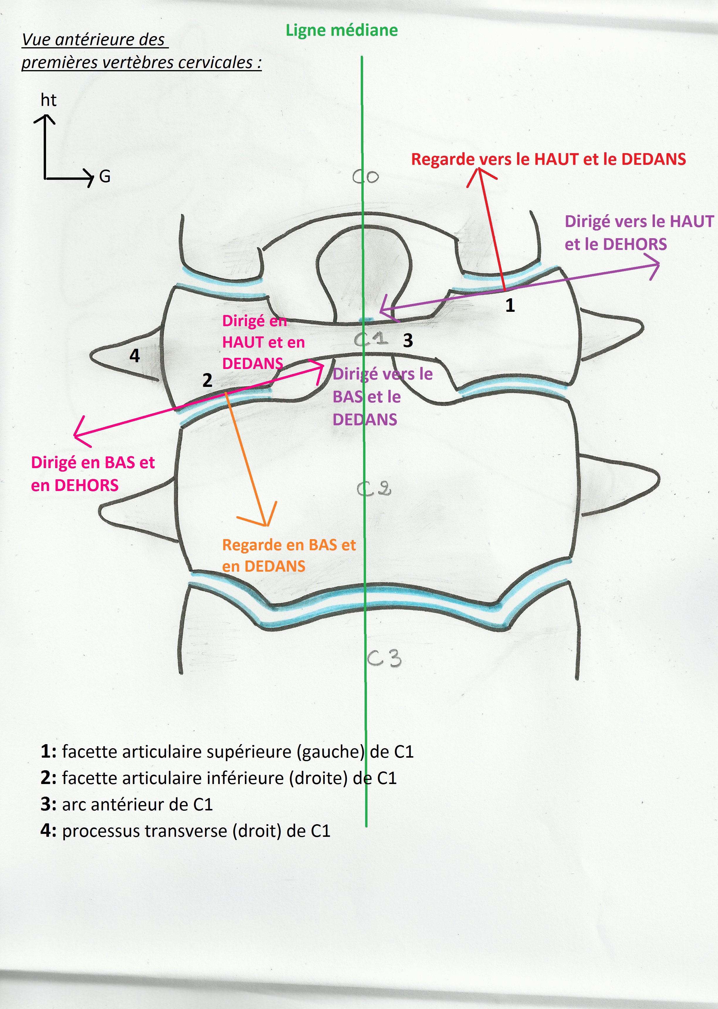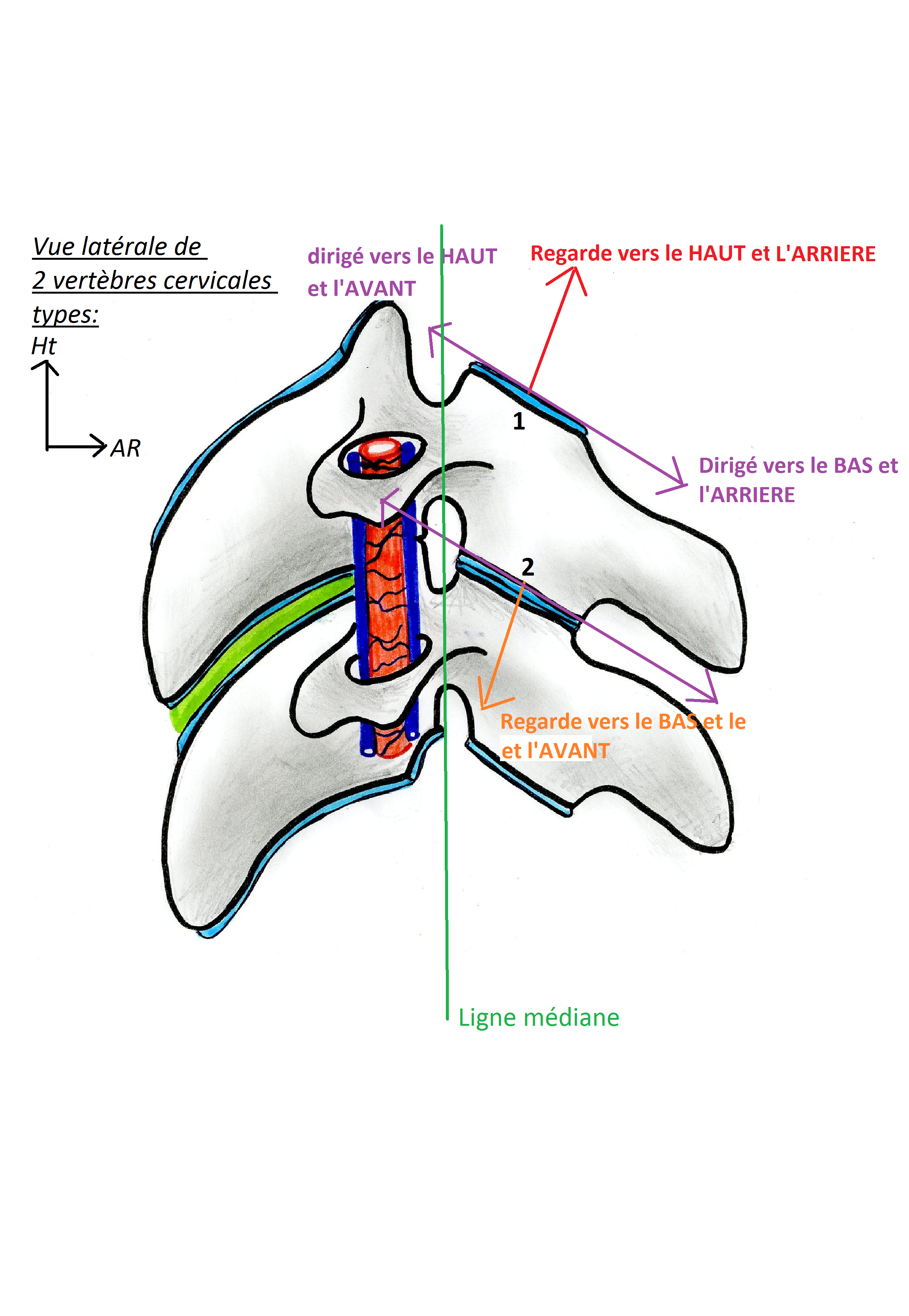 De plus, il aétait dit dans l ewplication du qcm que la facette articulaire supérieur regarde vers le haut et en arrière(ok) et vers le bas et en avant(je ne suis pas sur que ca marche la puisque ca regarde.)