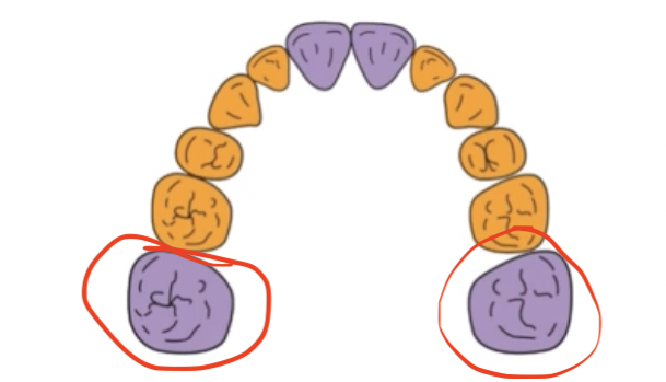 Les 2 dents définitives (entourés en rouge) dans la denture mixte seront lors de la denture permanente des molaires ou des pré molaires?
