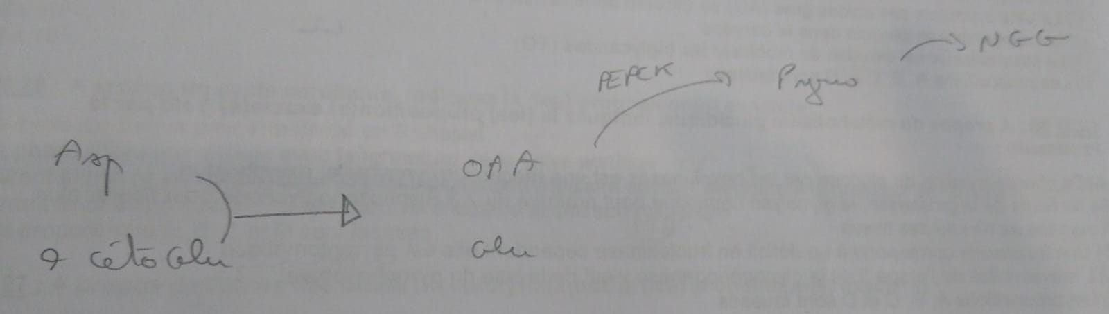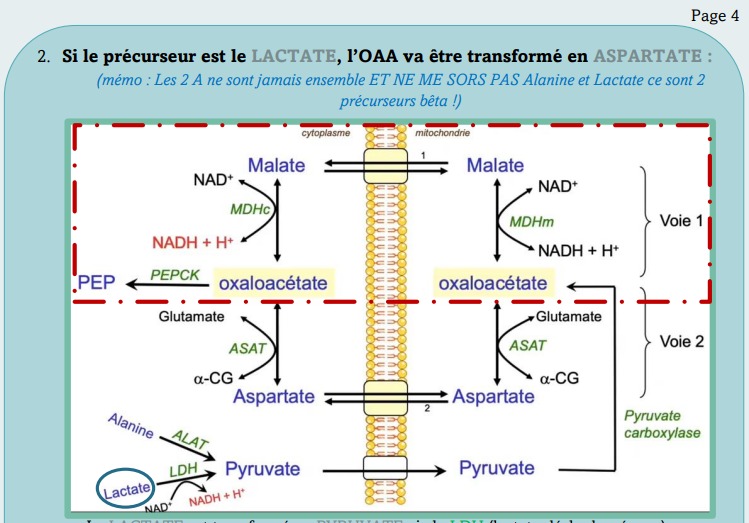 dans le cadre de la NGG, la transamination hépatique de l’aspartate va libérer de l'OAA ou du PEP mais pas du pyruvate