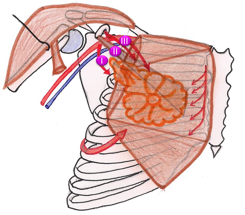 :arrow: Nœuds du niveau 2 : en avant et en arrière du petit pectoral = nœuds centraux et inter-pectoraux