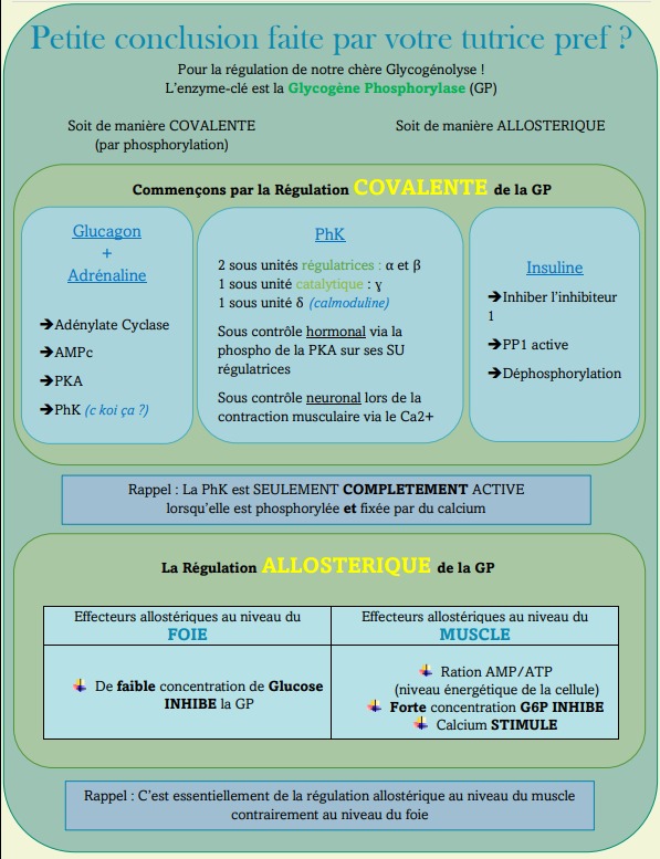 Je crois qu’elle a un rôle dans la Glycogenolyse, mais il me semble que la fiche sur la régulation est pas encore sortie (a moins que sa régulation soit juste intégrée dans la fiche glycogenolyse)