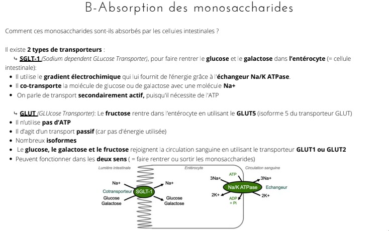 je suis un peu perdu car des fois des sucres n ont pas le même transporteur quand ils rentrent ou quand ils sortent de cellule anterocyte etc..