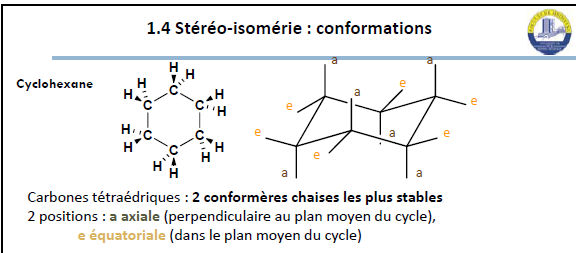 • Tous les atomes faisant partie du cycle lui même ( = tout ce qui n'est ni axial ni équatorial) seront dans le plan.