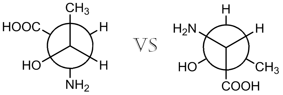 Si on passe ces 2 molécules sous représentation de CRAM, on n'observera aucune différence entre les configurations absolues des 2 molécules.