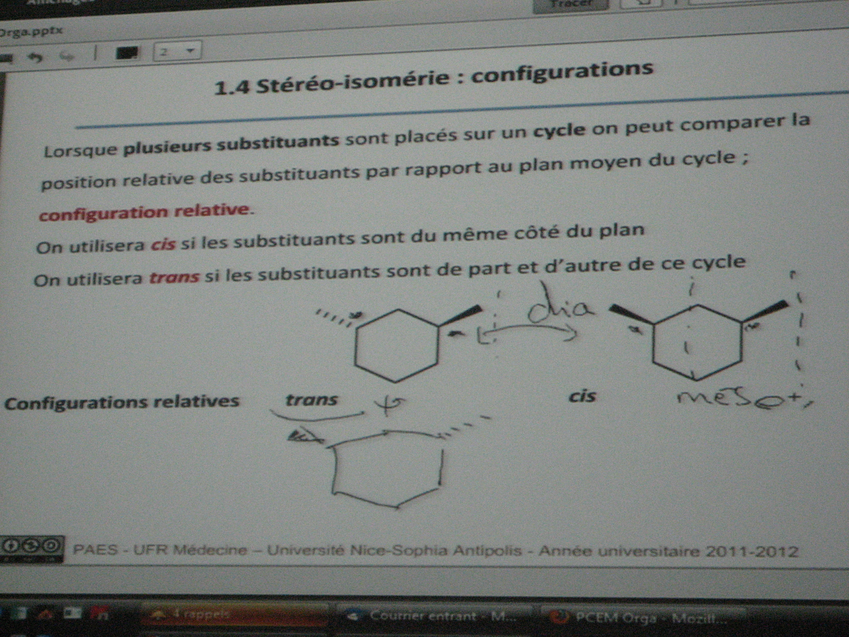 Alors voilà, j'ai un peu (beaucoup) de mal à comprendre le fait qu'on perde un stéréoisomère dans une molécule .. Enfin surtout dans l'exemple page 9 avec le cycle, je vois pas trop pourquoi on a un composé méso !