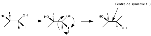 Le composé B n'a pas de plan/axe de symétrie : serait-ce car ses OH ont une configuration relative trans l'un par rapport à l'autre, et donc ne sont pas dans le même plan ??