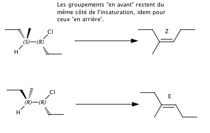 antipériplanaire. Tu dois donc te débrouiller pour faire tourner des groupements autour de liaisons simples pour te retrouver dans ce cas de figure, puis déterminer la configuration de la double-liaison ensuite, en sachant que :