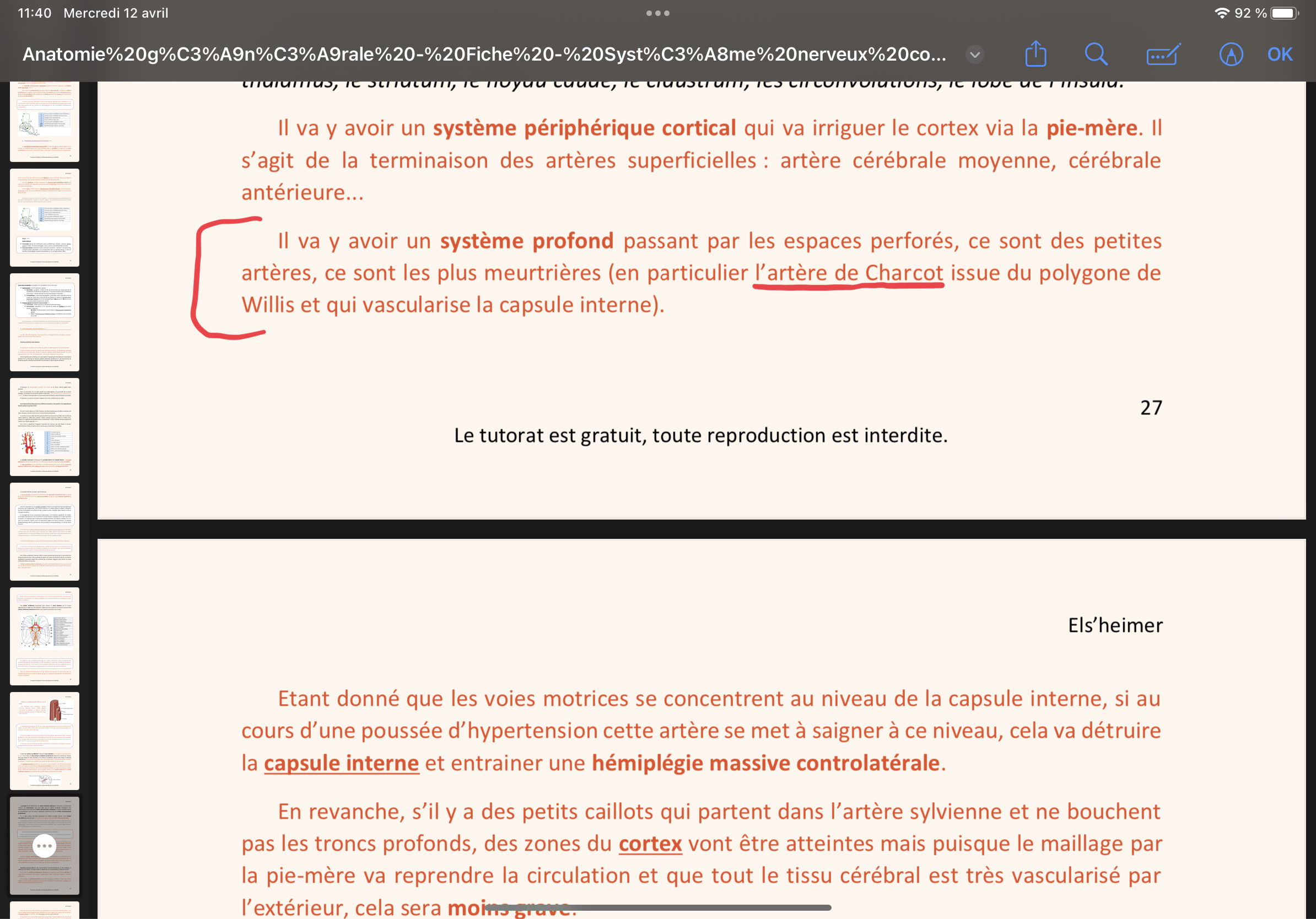 J’ai un peu du mal à comprendre pourquoi on dit que l’artère de Charcot est issus du polygone de Willis. Donc les côtés et les collatérales, on la nomme pas du tout..