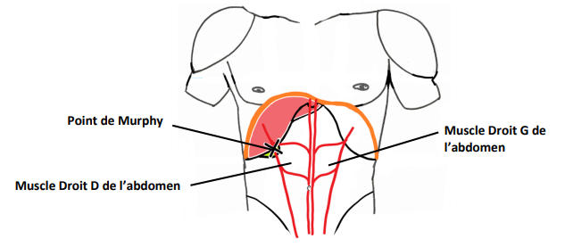 Le point de Murphy se trouve à la croisé entre le bord droit du muscle droit du côté droit (