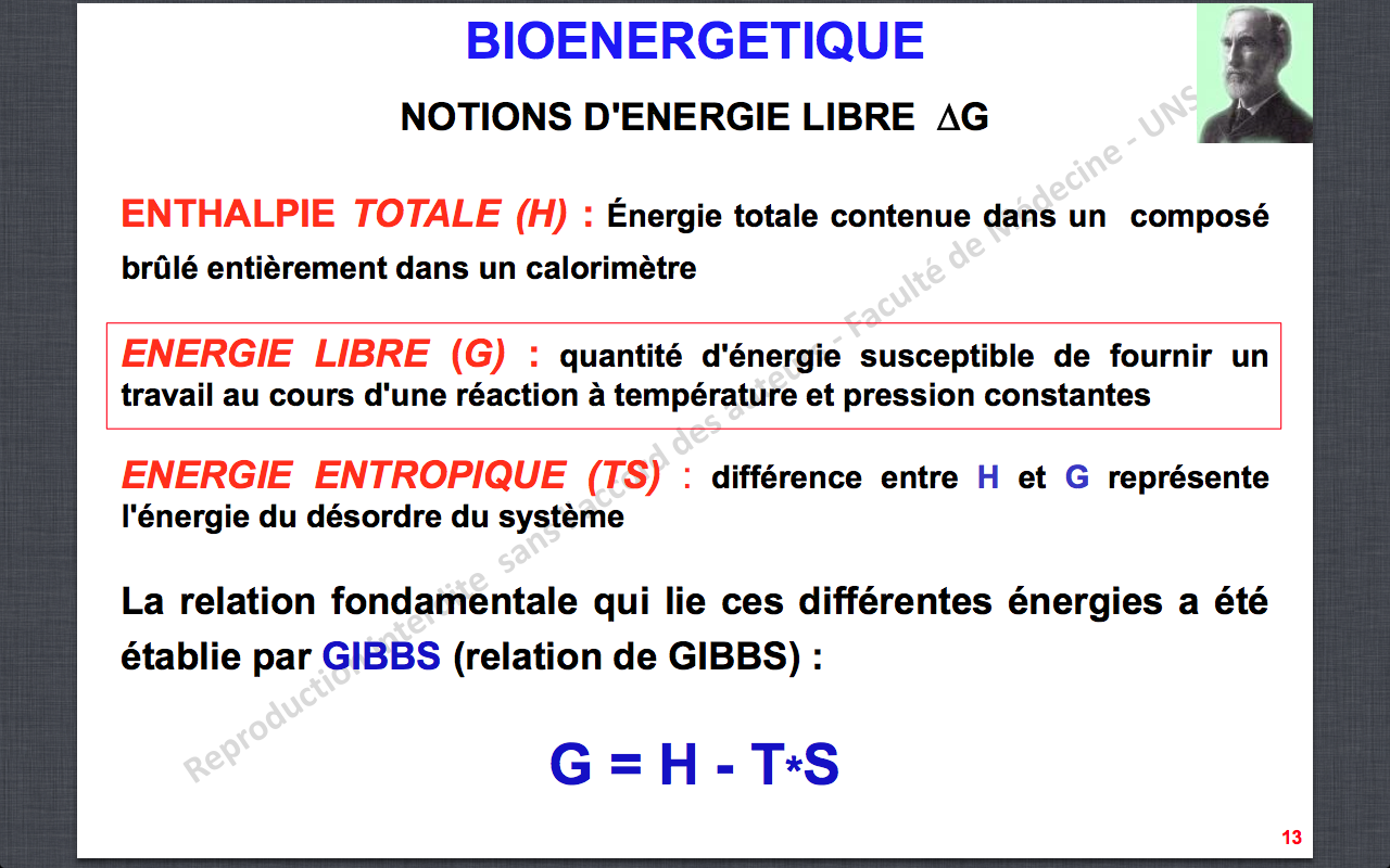 QCM 37 CD : la loie de Gibbs c'est ça : G = H - TS. Après, on peut aussi écrire DG = DH- TDS dans le cas ou on a passage d'un état initial à un état final (ex : une réaction). Je te met la diapo qui le montre :