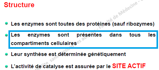 Et dans de nombreuses voies on sait que certaines enzymes agissent dans la mitochondrie, d'autres dans le REG (dans la néoGG par exemple pour le G6P il me semble ). Donc je ne comprends pas bien la véracité de l'item.. Pour moi toutes les enzymes ne sont pas partout !