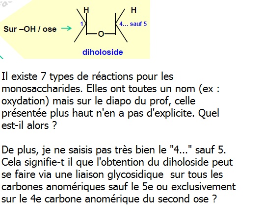 Pas plus de précision quant au nom de la réaction qui forme la liaison osidique, à voir avec un tuteur mais je crois pas que ce soit à connaître