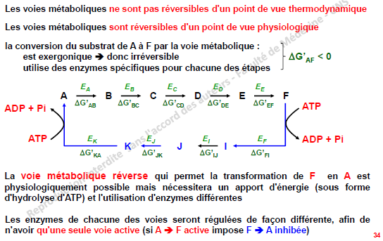 Dans la ronéo 5 page 4 il est écrit "si une voie métabolique est thermodynamiquement irréversible, dans les conditions physio on est capable de la réverser". Y'a pas un truc qui cloche ? Enfin si j'ai bien compris ce qui précéde, quand c'est thermodynamiquement irréversible, justement on est PAS capable de la réverser non ? Erreur du ronéiste ou bien j'ai rien compris ? x)