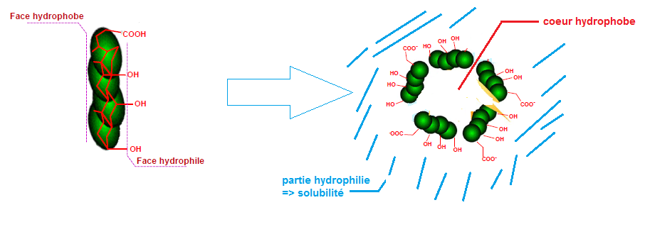 . de par leur structure avec une face hydrophobe et une face hydrophile, les sels biliaires peuvent se "replier" en micelle
