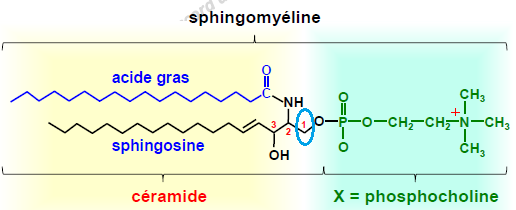Sphingophospholipides : c'est le carbone 1 de la sphingomyéline qui portera le groupement phosphate."