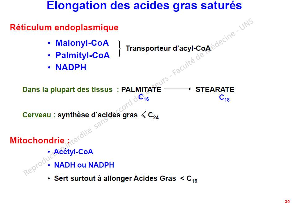 Mais c'est dans un but totalement différent que dans le foie, le TA et la glande mammaire : c'est pour produire des AG utilisés pour la biosynthèse des lipides complexes qui composent la myéline (cérébrosides, sphingomyélines,...)