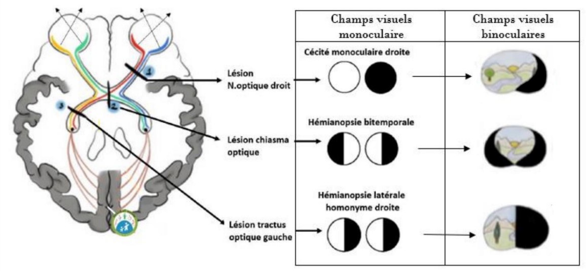 Mais il reste quand même le champ visuel temporal G et nasal G, c'est-à-dire que lorsque l'on a les deux yeux ouverts, on voit ce qui se passe à notre gauche + ce qui se passe en face de nous, mais pas ce qui se passe à droite !