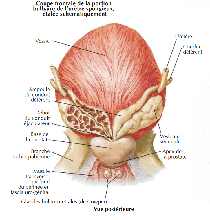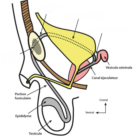 Or, sur le schéma, on voit l'abouchement des 2 conduits déférents au niveau du colliculus spermatique donc à l'intérieur de la prostate...