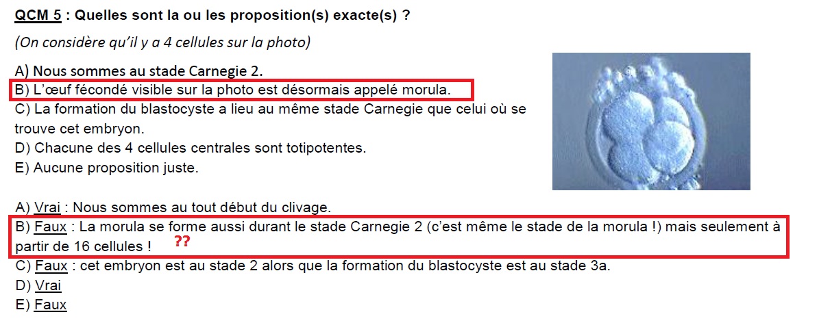 Juste une confirmation Hope tu as dis très bonne réponse mais tu considère que l'item A est faux ou pas du coup vu que le stade 2 concerne la morula pour moi on ne peut le compter juste car on observe sur la photo 4 blastomère et non 16.