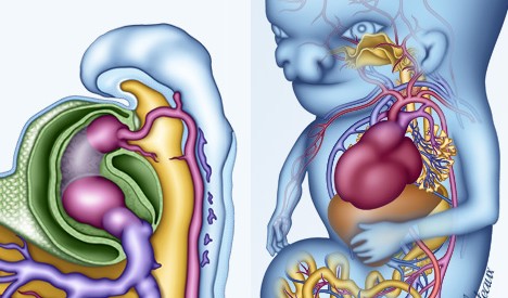 :arrow: Ici, voici un schéma qui te montre un embryon, puis un fœtus. Tout ce qu'il faut comprendre en fait, c'est que le cœur est à la base à l'extérieur du corps, et qu'il va petit à petit (avec la plicature, l'évolution de l'ébauche cardiaque, etc ...) s'intégrer dans le corps (cela concerne donc les tubes endocardiques puis le tube cardiaque qui s'infléchit, etc ...)