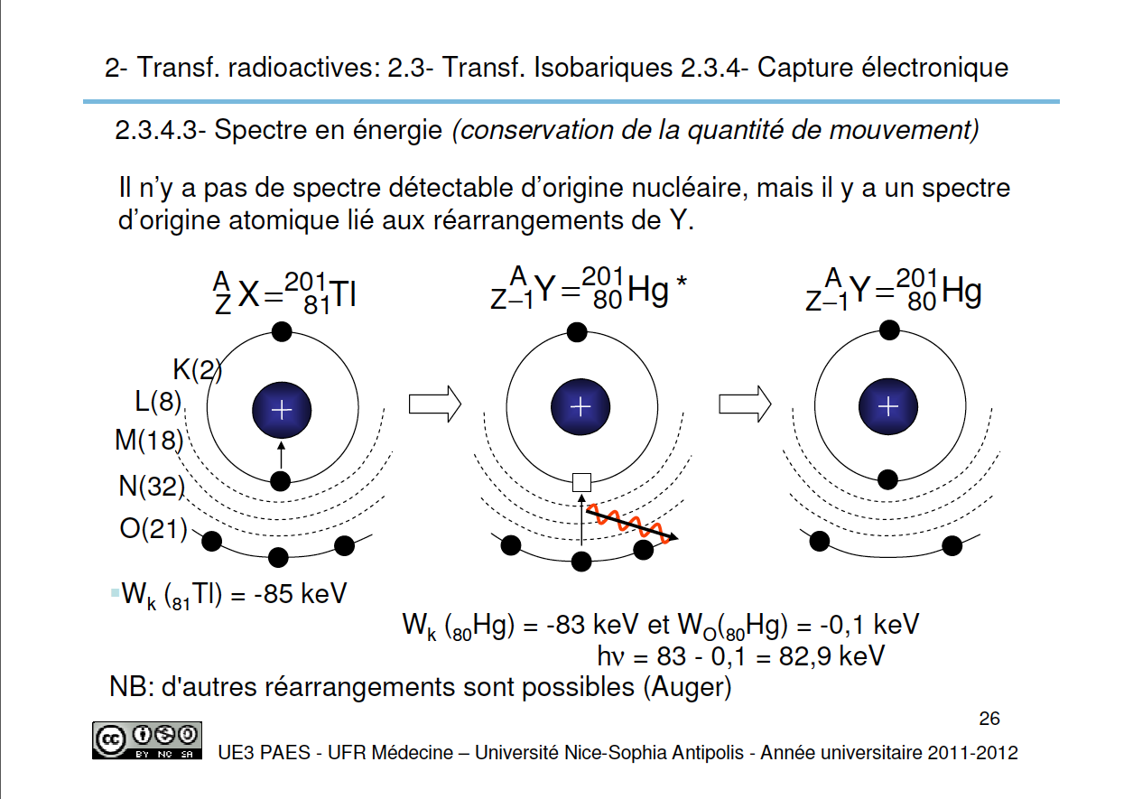 A) L'énergie émise E par la réaction ne permet pas d'expulser l'un des électrons du cortège : 1. Le photon d'énergie E émis est absorbé par un électron de la couche i