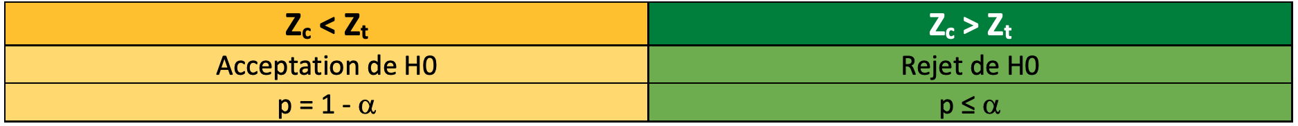 rejet de H0. C'est valable pour la majorité des tests (X2, T Student, …)