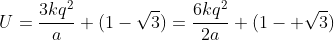 Au total:U=3kq2 (1-√3)/a=6kq2(1–1⁄2)/2a