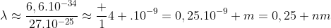 La longueur d'onde de de Broglie vaut