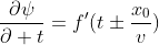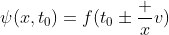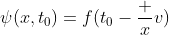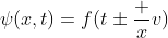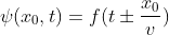 On décrit donc l'onde avec la fonction . Pourquoi une telle fonction ? Parce qu'en fait, l'onde va arriver avec un certain retard au point d'abscisse x... Comme l'onde se déplace avec une célérité v, le retard engendré vaut ! (Ici on se déplace dans le sens des x croissants, si on se déplaçait dans le sens des x croissants, au contraire l'onde arriverait avec une "avance" valant aussi , ce qui donne la fonction )