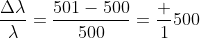 Si le réseau comporte 200 fentes/mm, pour obtenir au moins 500 fentes il faut une largeur minimale du réseau de . L'extension du réseau optique doit donc être d'au moins 2,5 mm.